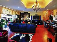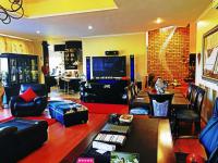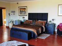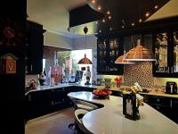From the double-volume entrance hall, the home flows effortlessly into spacious open-plan living, dining, and bar areas—ideal for relaxed family living and stylish entertaining. The gourmet kitchen features granite finishes, a central breakfast island, and a separate scullery/laundry for added convenience. The living areas open onto an expansive covered patio with gorgeous garden views, blending indoor-outdoor living seamlessly.