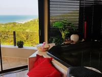 Upstairs are three generously sized bedrooms, all opening onto a large sea-facing balcony. The master suite is a sanctuary on its own—featuring a luxurious en-suite bathroom, a walk-in dressing room with ample cupboard space, and an adjoining Jacuzzi room offering panoramic sea and garden views. A private lounge completes this grand main suite.