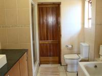 This elegant home offers a lounge, spacious open plan living areas that consist of Family / TV room, dining room and modern kitchen. Kitchen offers, granite work tops and a separate scullery/ laundry with space for appliances. Upstairs you will find 3 bedrooms with built-in cupboards, 2 full bathrooms (1 en-suite bathrooms). From the living areas, you have access to the garden and covered patio with build in braai and swimming pool. Ample parking space, 2 garage that is interleaving the house. Domestic room, 1 bathroom (en-suite bathroom).