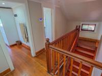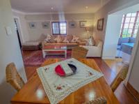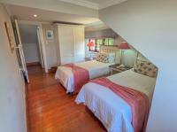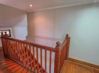 You enter this fabulous property via the expansive patio that leads into an elegant hallway. The lower level comprises the open plan lounge and dining area with an extra sun room. Furthermore, you have the the kitchen with granite counter-tops, a large laundry area, the guest toilet as well as the large main bedroom with its en suite bathroom. Make your way up the beautiful wooden staircase to the upper level where you have a further three bedrooms and another bathroom. You also have a large linen cupboard on the upper level. The property boasts two garages and a water tank has been installed in case of water outages.