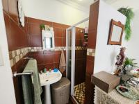 The interior features a welcoming entrance hall leading to a dedicated lounge, a dining room, and a practical study, providing versatile living and working areas. The living spaces are adorned with durable terracotta tiled flooring, enhancing the home's warm ambiance. Large sliding glass doors seamlessly connect the indoor living area to a expansive covered outdoor patio, perfect for entertaining. This patio, complete with a built-in BBQ grill and terracotta floor tiles, overlooks a private garden and a refreshing swimming pool, creating an ideal setting for relaxation and social gatherings. The kitchen is equipped with wooden cabinetry and includes modern appliances such as a dishwasher and washing machine, offering convenience for daily living.