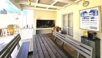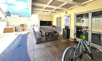 Sliding doors from the living area give access to an undercover patio, private back garden, built-in braai and small pool.