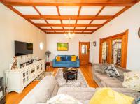 Original Oregon flooring graces the main house, accompanied by pressed ceilings, adding to the timeless charm of this home. A second full bathroom, adorned with a beautiful stained glass window, adds a touch of elegance to the living spaces. Moving through the sun adorned recreation room take some steps into the sprawling backyard to discover a solar-heated plunge pool with a deck area, surrounded by lush green lawns- a dream oasis for young and old. Adjacent to the main house, two functional, income bearing cottages beckon, each with its own distinctive [hidden];