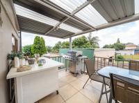 Enter through a warm, welcoming entrance hall. Walking through lead glass double doors into an inviting lounge are adorned with beams running across the ceiling, exuding character and warmth. Sunlight bathes the sophisticated kitchen and dining room, creating an inviting atmosphere that spills onto the covered patio, making it the heart of the home. The main bedroom, a sanctuary of space, leads to an expansive open en suite bathroom, a true delight with abundant storage space. The two additional bedrooms, each with generous built-in cupboards, offer comfort and style. While the fourth room can be used as a bedroom or office [hidden];