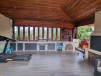 As you ascend up the stylish staircase , you will be greeted by an wide open area that leads out to the back entertainment veranda. Entertain in style on the expansive balcony featuring a braai area and an outdoor gym for the fitness enthusiast. Enjoy the wide expansive veranda with stack up windows that flood the space with natural light.