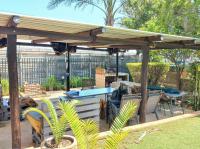 * Very spacious udercover patio with braai and boma. Next to pool, totally relaxing.