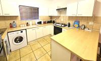 Lovely melamine kitchen with under-counter oven & stove.