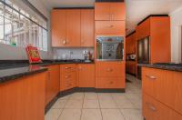 Only the kitchen and bathroom floors has modern tiles, while the entire home has this warm, modern wooden floors. There are four bedrooms with build in cupboards, with the main bedroom having a main en suite bathroom. Two full bathrooms and a separate guest toilet caters for the sanitary needs of the occupants. The kitchen has modern fitted cupboards, a hob and oven. The reception areas comprise of an open plan lounge and dining area.