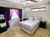 The living and dining rooms are graced with large bay windows that lend a timeless charm to the space. Another advantage of this property is its two self-contained, fully furnished one-bedroom apartments, perfect for generating rental income. The entire property is secured behind a fully walled and gated entrance, surrounded by lush tropical gardens, and offers carport space for four vehicles. Added conveniences include CCTV cameras, a state-of-the-art alarm system with beams, and a water tank for those unexpected outages.