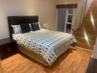 Stairs leading down to second bedroom, also en-suite with full bathroom (separate shower and bath).