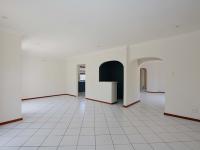 The interior boasts a bright and airy atmosphere with neutral white walls and clean white tiled flooring throughout, providing a versatile canvas for your personal style. The property features two distinct lounges, a dedicated dining room, and an additional family TV room, ensuring ample space for relaxation and entertainment. An entrance hall welcomes you into the home, leading to the well-appointed kitchen, ready for your culinary endeavours. Architectural details like arched doorways and crown molding add a touch of elegance to the living spaces.
