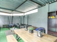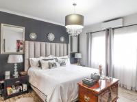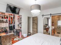 This distinguished residential property, situated in the established suburban enclave of Albertville, Johannesburg, presents an exceptional opportunity for discerning buyers. The interior boasts an expansive open-plan design, seamlessly integrating the lounge and dining areas. The living room is characterized by abundant natural light, contemporary wood-look flooring, stylish chandeliers, recessed lighting, and a decorative fireplace, creating an inviting ambiance. Sliding doors facilitate effortless transition to the outdoor leisure areas, enhancing the indoor-outdoor flow.