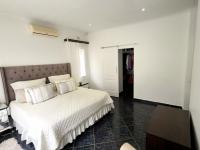 The luxurious main bedroom features a walk-in closet and a beautifully designed en-suite bathroom. Two additional air-conditioned bedrooms, along with a study, complete the comfortable living spaces. Step outside to a huge garden and backyard, perfect for outdoor enjoyment. At the rear of the property, there’s a staff room with a bathroom and a separate storage room. Parking is a breeze with an automatic double garage plus undercover space for two more vehicles.