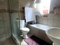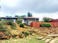 Upon entering, you are welcomed into the living areas with porcelain tiles. The lounge has a cozy fireplace, an air conditioner, and has sliding doors leading out a covered patio, ideal for indoor-outdoor living. The lounge flows to the separate dining room. The modern kitchen boasts sleek granite countertops, a hob, under-counter oven, and an extractor fan. The kitchen also leads to a separate laundry and an enclosed courtyard, adding extra convenience to daily tasks.