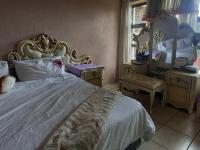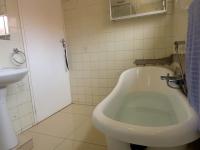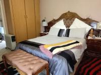 The bedroom wing features four spacious bedrooms and two bathrooms. Two of the bedrooms are fitted with laminate flooring, while the third bedroom and main bedroom are adorned with tiles for a sleek and modern look. The main bedroom is generously sized, featuring an air conditioner and an en-suite bathroom with a bath, shower, basin, and toilet. The family bathroom is equally impressive, with a freestanding slipper bath, shower, toilet, and basin.