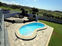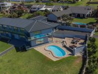 Designed for entertaining, this home features a stylish upstairs bar area that opens to a balcony with breathtaking ocean views, as well as a second entertainment space downstairs with its own entrance. Outside, the sparkling pool and braai area provide the perfect spot to unwind to the sound of waves crashing nearby. The property is nearly off the grid, with solar power and water tanks, making it both efficient and eco-friendly. There’s also plenty of parking, a double automated garage, and an additional living space currently used as the manager’s quarters—ideal for a granny flat or extra guest accommodation. Whether you're looking for a dream coastal home or an investment opportunity, this stunning property has it all!