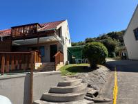 The outdoor braai area is accessible directly from the living space, making it ideal for entertaining guests. An outdoor shower room is available for quick rinses after a day at the beach.