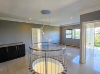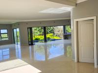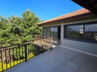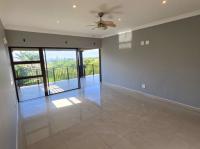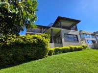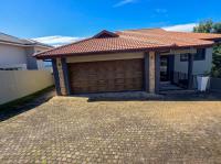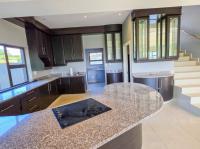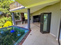The home features three spacious bedrooms and two bathrooms, including a main en-suite. Two of the bedrooms open onto a balcony with stunning estate and sea views. A separate study or pajama lounge with large windows allows for plenty of natural light and scenic views. The gourmet kitchen is fitted with granite countertops, a breakfast island, and a separate scullery/laundry, and it flows seamlessly into the open-plan dining and lounge area. Stacking doors open up to a sparkling pool, entertainment patio, and braai area—ideal for entertaining.
