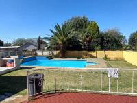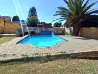 Outside there is an outdoor entertainment area, a sparkling swimming pool and a built-in braai - ideal for weekend gatherings. The property is further enhanced by double garages, a carport and an extra parking for visitors. For security this home offers a security gate, 24 hours security, alarm system, security beams, electric fence, intercom, CCTV cameras and burglar bars. The property includes a staff accomodation and an outside toilet.