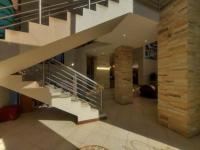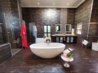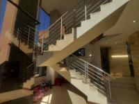 Discover this exceptional modern residence in the sought-after suburb of Meyersdal, Alberton, South Africa, offering a blend of sophisticated design and comfortable living. The property boasts a striking multi-level architectural design with high and double-volume ceilings, creating an expansive and airy atmosphere throughout. The open-plan layout seamlessly connects the living spaces, featuring elegant stone accent walls, a contemporary fireplace, and a built-in bar area perfect for entertaining. A spacious kitchen with a large island forms the heart of the home, complemented by a dedicated dining room and a family TV room, ensuring ample space for relaxation and social gatherings. A study provides a quiet retreat for work or contemplation.