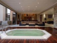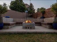Step outside to a private oasis featuring a sparkling swimming pool with integrated decking, ideal for enjoying the South African climate. The property includes a well-maintained garden and paved areas, offering low-maintenance outdoor living. With two garages and four additional parking spaces, there is abundant secure parking for multiple vehicles.