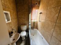 - Sleek, modern bathroom with shower-over-bath, basin and toilet