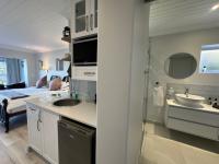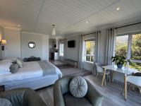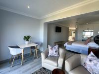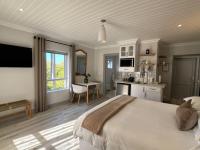 Six luxurious, sea-facing suites featuring private sitting areas, flat-screen TVs, self-catering kitchenettes equipped with a bar fridge, kettle, toaster, and microwave.