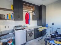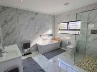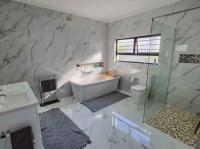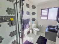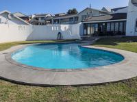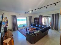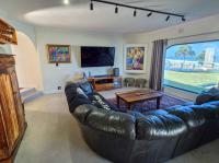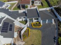 Every bathroom is fully tiled to the ceiling with a combination of bath and shower options to suit all preferences. The living areas are spacious and light-filled – the lounge has big picture windows framing the lush garden and sparkling pool, and the dining room connects to both the kitchen and an enclosed entertainment/sunroom via sliding doors. It’s the kind of space that invites long summer braais and lazy afternoons with friends and family. The kitchen is a chef’s dream – modern, sleek, and functional with a separate scullery and pantry. Upstairs, there’s a fantastic bonus: a games room or bar area (currently used as a gym/home office) – perfect for entertaining, and its own private balcony with amazing sea views. There’s also a separate flatlet that links the kitchen and garages, as well as a dedicated outside laundry space. The home boasts a double, extra-spacious, automated garage. But what truly sets this property apart are the thoughtful eco-friendly features. It’s equipped with a solar power system and a generous 14kW battery backup, as well as a 5,200L water tank – giving you peace of mind and long-term sustainability.