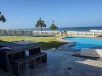 I’m so excited to share this stunning coastal gem with you – it’s more than just a house, it’s a lifestyle. Perfectly positioned right across from the warm Indian Ocean on Uvongo’s most popular beachfront boulevard, this beautifully renovated home is move-in ready and waiting for someone to fall in love with it! Every inch of the home has been thoughtfully upgraded with high-end finishes, including state-of-the-art fittings and custom cabinetry throughout. It’s the perfect blend of style, comfort, and practicality – ideal as a permanent residence, holiday home, or even to launch your very own B&B. The house offers four generously sized bedrooms – three with gorgeous sea views! The main bedroom feels like a retreat, complete with air-conditioning, a walk-through dressing area, and a luxurious en-suite bathroom with a large oval bath. Sliding doors from the main suite open onto a patio that overlooks the pool, gardens, and ocean mist rolling in from just across the road.