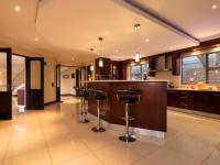 The well-appointed kitchen features rich, dark solid wood cabinetry, a spacious walk-in pantry, and is complemented by a separate scullery and laundry area—ensuring convenience and functionality for everyday living.
