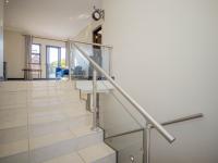 The staircase with glass and stainless steel ballistrade, steps you up to the expansive pyjama lounge with [hidden];