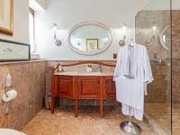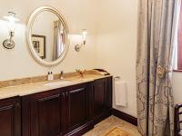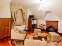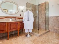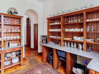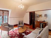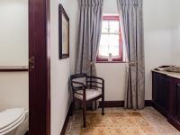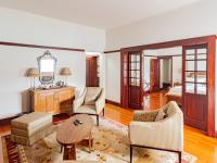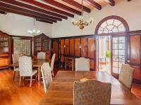 The magnificent 1500 sqm residence exemplifies classic Cape Dutch architecture, featuring pristine white facades, distinctive red-tiled roofs, and charming green shutters, creating an immediate impression of stately elegance. Internally, the property boasts a meticulously planned layout, comprising five spacious lounges and four dedicated dining rooms,
