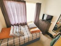 Exterior amenities include a private balcony, offering elevated outdoor space. The property features a communal swimming pool and entertainment area, ideal for leisure. A single garage provides secure parking, while paved communal areas and a communal braai area enhance the lifestyle offerings within the complex.