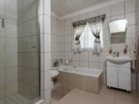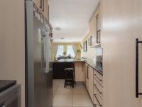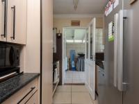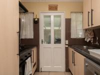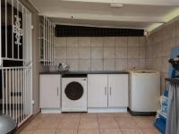 The stylish kitchen is fitted with granite countertops, a breakfast nook, new gas hob, extractor fan, electric undercounter oven, and space for a double door fridge. An enclosed back patio doubles as a fully fitted laundry and covered braai area, perfect for all-weather entertaining.