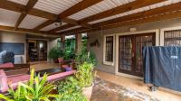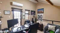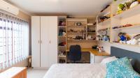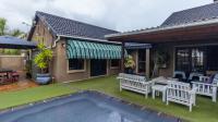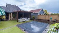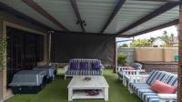 Entertain in style with a large entertainment area featuring a bar, built-in braai, and double doors opening onto two covered patios. The first patio, with its own braai, leads to a cozy private garden, while the second patio is perfect for gatherings overlooking the sparkling swimming pool. Both patios are fitted with roll down canvases for year round enjoyment.