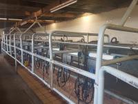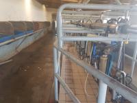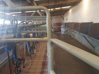 Excellent income! Fencing in good condition. 2 portions of 22 hectares adjoining .Camps in good condition, 9 hectares under maize which is used as silage. Red soil, kikoejoe and natural grazing. 2 chicken houses small can put in use again. 5 water tanks 5000 litres. Cattle crawl, 12 kva generator. 9 point fishbone dairy machine, 2 milk tanks 1200 and 1500 litres and 200 litre mesh tank. INCLUDED IN THE SALE [hidden] the cows and the calves and 1 bull. ALSO ALL the implements. List available on request. SHOP in town with milk tanks, counters, shelves, till, wrapping machine. EXCELLENT INCOME financials available only to serious buyers