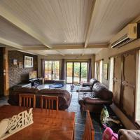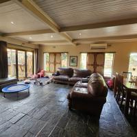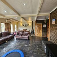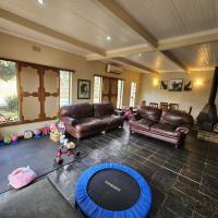 Inside, the open-plan lounge and dining area boasts stone flooring and a Jet master fireplace, creating the perfect setting for family gatherings or cozy evenings.