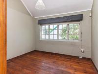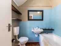 Upstairs, you’ll find two well-sized bedrooms, both looking onto the leafy street outside. The main bedroom has built-in cupboards, while the second offers a freestanding armoire. The family bathroom includes a full bath and basin and a window overlooking the garden.