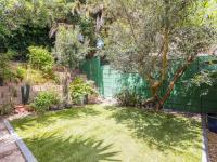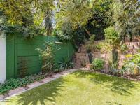 The kitchen leads out to a private back garden with terraced planting blocks, perfect for a vertical garden or green wall. A small shed has handy space for garden tools.
