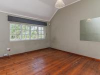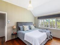 Upstairs, you’ll find two well-sized bedrooms, both looking onto the leafy street outside. The main bedroom has built-in cupboards, while the second offers a freestanding armoire. The family bathroom includes a full bath and basin and a window overlooking the garden.