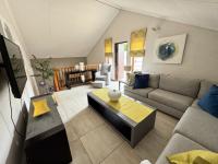 Upstairs, a spacious family lounge/TV room opens onto an additional open-air veranda, ideal for entertaining, braais, or simply enjoying the fresh air.