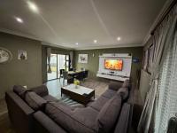 This spacious home, spanning 220 square metres on a generous 476 square metre erf, is thoughtfully designed for family living. The interior features a well-equipped kitchen complete with a pantry, a dedicated dining room perfect for meals, a comfortable lounge for relaxation, and an additional family TV room, providing versatile spaces for entertainment and daily activities.