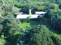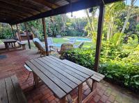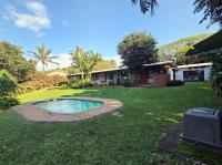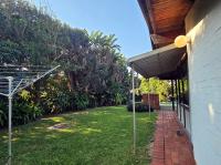 In addition to the main residence, a separate one-bedroom flatlet provides versatility for accommodating guests or generating rental income. Practical amenities abound, including a dedicated laundry area, ensuring that daily tasks are effortlessly managed. Outside, the meticulously landscaped gardens enchant with their lush greenery, providing a serene backdrop to the sparkling swimming pool—a refreshing oasis on warm days. Entertaining is a delight with the built-in braai, perfect for hosting gatherings and creating lasting memories with loved ones. Security is paramount, with the property fortified to offer peace of mind, allowing you to fully immerse yourself in the idyllic coastal lifestyle without worry.
