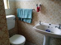 Inside, the residence features an open-plan layout that seamlessly connects the living spaces. The spacious lounge, complete with a ceiling fan and abundant natural light from large windows, offers a comfortable area for relaxation and entertainment. The functional kitchen, though presenting a somewhat dated aesthetic, is equipped with extensive cabinet storage, a double basin sink, built-in oven/hob, and an extractor fan, catering to everyday culinary needs. Adjacent to the kitchen, a bright dining area provides a perfect setting for family meals.