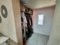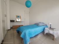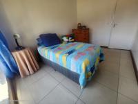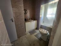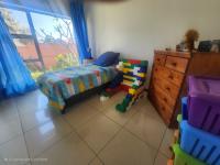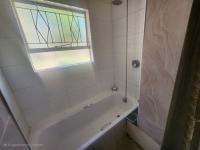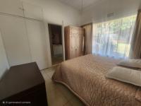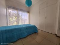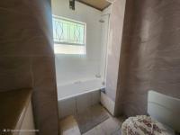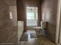 The main bedroom is fully tiled and includes built-in cupboards along with an en-suite bathroom fitted with a bath, shower, basin, and toilet. The second and third bedrooms are also tiled and include built-in cupboards.