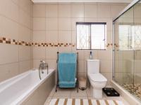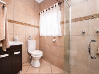 On the opposite side of the home are three more bedrooms: one with modern laminate flooring and built-in cupboards, and two with carpeting and storage. A neat family bathroom with a bath, basin, and toilet serves this wing.