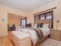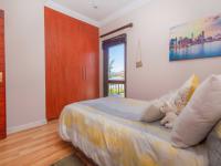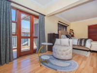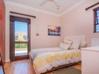 Ascend to the upper level to find three bedrooms. The large main suite is a luxurious retreat, featuring a lounge area, an abundance of cupboard space, and a private balcony for enjoying tranquil views. The en-suite bathroom boasts full amenities, providing a spa-like experience. The additional two bedrooms are well-appointed and share a family bathroom.