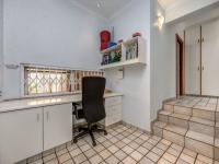 4 Bedrooms on the opposite wing, with laminate floors, ceiling fans and mirrored cupboard doors. The Main bedroom has doors leading out onto the garden and offers a dressing area and a lovely large full bathroom with a study nook servicing the children's bedrooms.