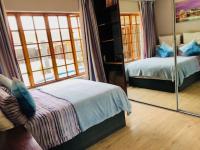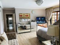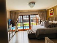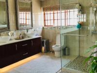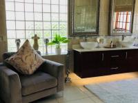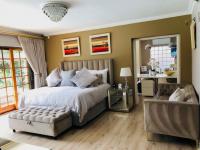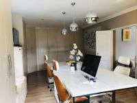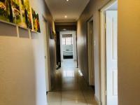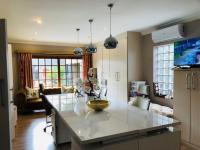 Inside, the home offers a thoughtfully designed layout featuring a well-appointed kitchen with a pantry, a dedicated dining room, and two spacious lounges. Modern laminate flooring and recessed lighting contribute to a contemporary ambiance, while a custom-built wet bar in one living area adds sophistication, perfect for entertaining.