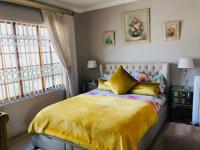 This sprawling single-story residence, set on a generous 1500 sqm erf, immediately impresses with its Mediterranean-inspired architecture, terracotta tiled roofs, and meticulously maintained, lush landscaping. A substantial, neatly paved brick driveway and forecourt provide ample parking, leading to inviting covered verandas and an attractive entrance.